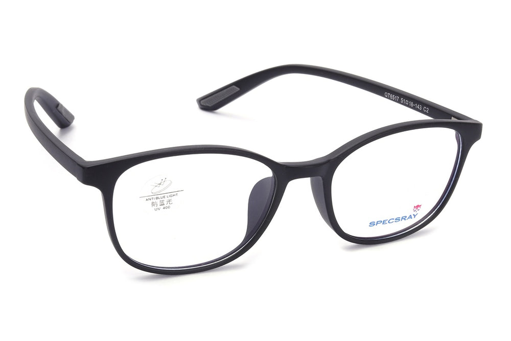 Discover the model QT6517, designer eyeglasses at SpecsRay, featuring a Black TR Sheet front and TR Sheet Black temples. Sized 51-18-143, these stylish frames support Blue Filter, Single Vision & Progressive Lenses. Available online or at a SpecsRay store near you.